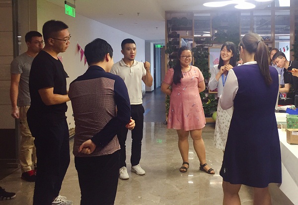 上海的默契大考验全靠天意,微信群里掷骰子,掷到同样点数的自动组CP,MC负责带气氛,提问CP中小A的喜好,eg“喜欢喝啤酒还是奶茶”,小B悄咪咪的在微信群里作答,小A现场说出自己的答案,如果两人答案一致,很显然,小B对小A的爱在“不言”中...