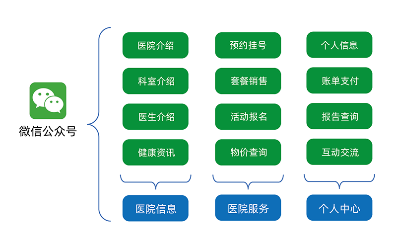 刷朋友圈了解好友最新动态,从微信公众号文章中看尽人生百态,吃饭购物微信“秒”支付,生活缴费、理财借贷、出行住宿、医疗健康……微信,几乎涵盖、影响着生活的方方面面。尤其是微信公众号在医疗领域的应用,对患者来说不仅能简化就医流程,更能减少不必要的额外费用。对医生来说,不仅能减少工作时间,还能提高患者管理质量、提高诊治水平。对医疗机构来说,能更及时直接的了解患者需求、为患者服务,还能提高服务满意度,构建和谐的医患关系。