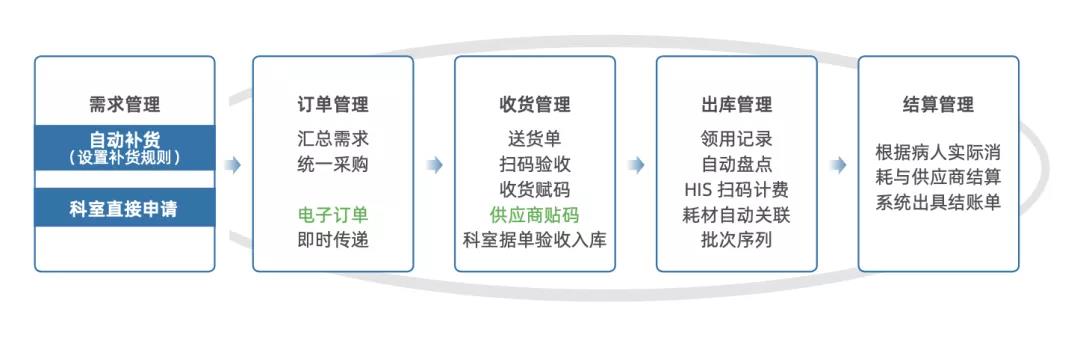 通过深化RPA应用,康博嘉HRP可自动化处理重复耗时任务,如报税、收款稽核、月结检查、健康报告等,助力财务改进日常繁琐工作; 通过系统与智能硬件结合,例如,用OCR技术实现发票查重、连号、验真的批量智能识别,HRP可帮助医院减少人工复核工作,提高员工处理报账业务的效率与准确度。 3.供应链全流程管理