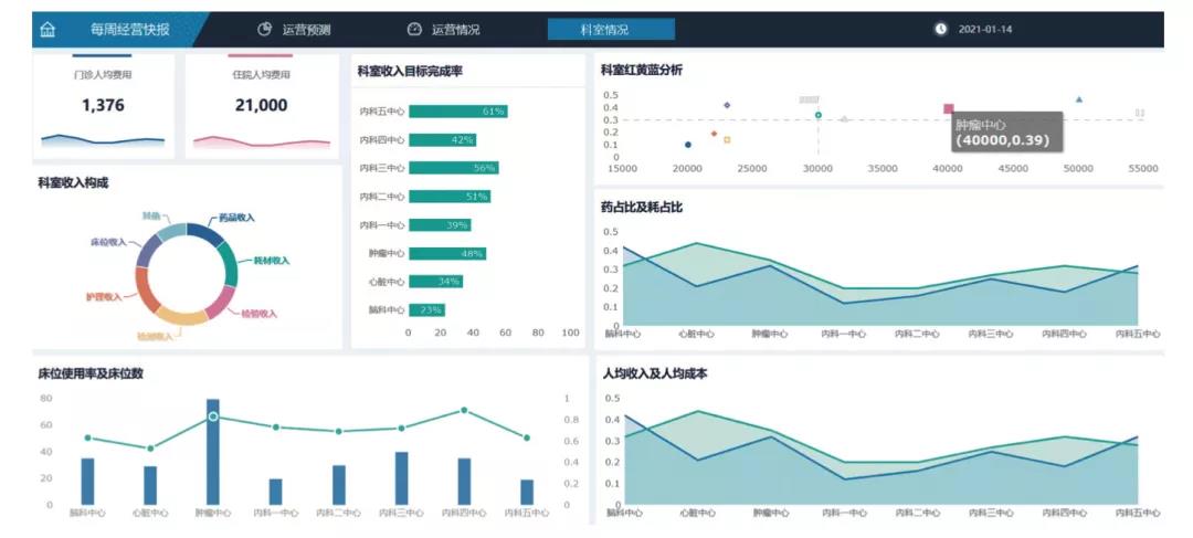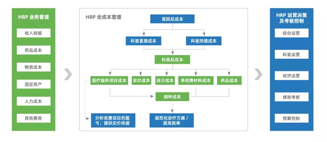薪酬绩效:前端排班与后端薪酬、绩效打通;薪酬与业务、薪酬与财务信息共享; 重视人才发展:在线培训与后端能力体系建设联接,建立学习型组织。 6.全面预算管控 预算编制:助力医院构建三级科室预算体系,预算任务、编制、审核、批复全过程管理; 项目预算:结合科研项目等专项预算,实现全面预算管控; 预算控制:事前支出预算控制,事中预算提醒,事后预算回写占用,借款跟踪,及时清理; 预算分析:科室可实时查询各自的预算执行情况,定期分析,采取对策,控制支出,节约成本。 7.多维度成本管理 康博嘉HRP支持多维度的成本管理,助力医疗机构通过分析科室成本构成实现总成本控制;通过管理医疗服务项目成本为项目定价提供现实依据;通过病种成本核算优化诊疗方案、制定合理临床路径。 8.运营数据中心(ODR)